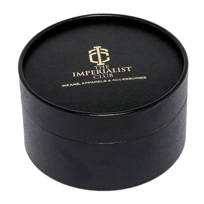 Traditional rectangular belt buckle in a gold brush metallic finish engineered with solid hardware with The Imperialist Club Logo engraved.